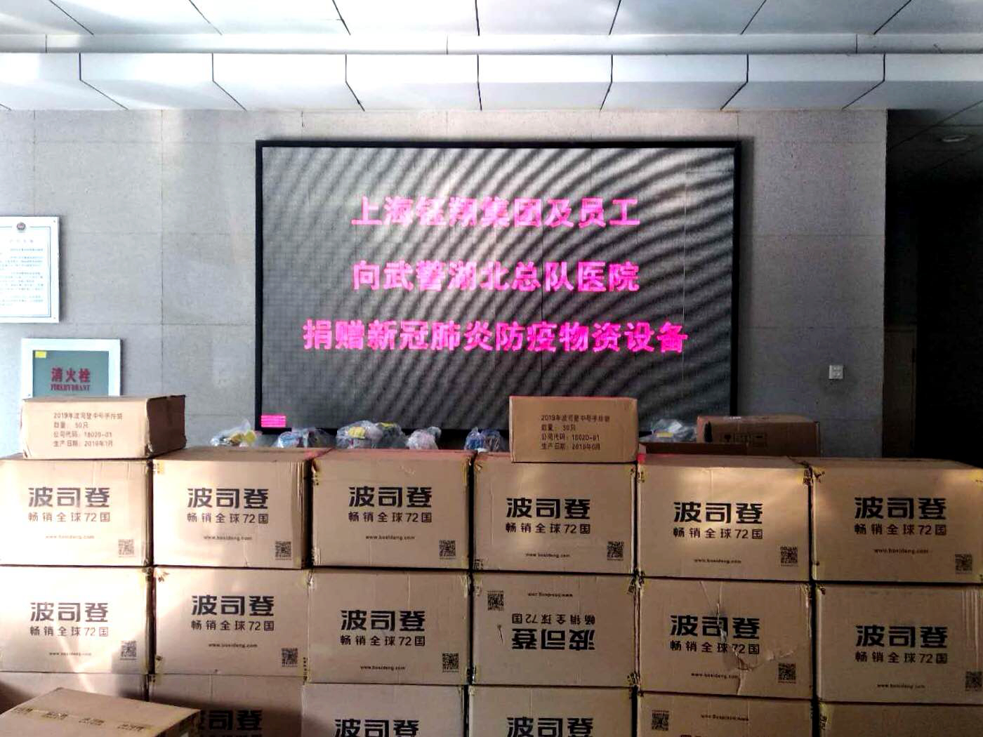 2月24日,鈺翔控股集團員工及企業捐款80萬元購買的第二批抗疫醫療物資送達武警湖北省總隊醫院,此批物資包括熱成像人體測溫系統、便攜式數字X光機、掌式脈搏血氧飽和度儀、電動噴煙器、紫外線消毒車、電動超低容量噴霧器及防護服等。