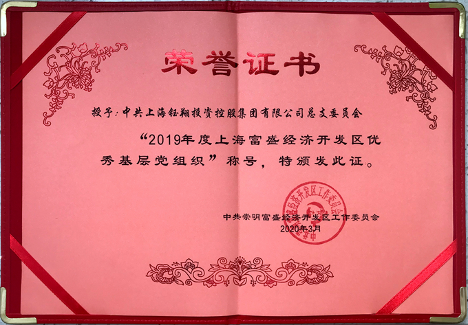 近日,集團黨總支被評為2019年度崇明富盛經濟開發區優秀基層黨組織。