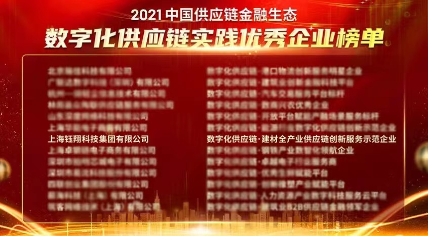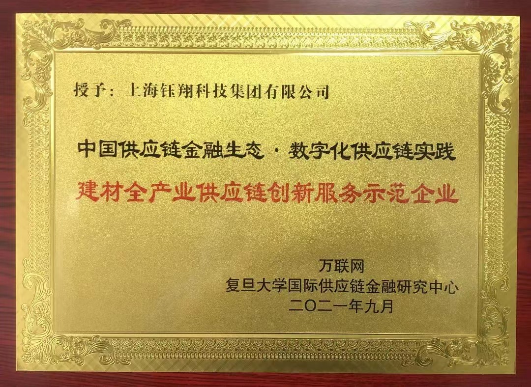 在此背景下,萬聯供應鏈金融研究院聯合復旦大學國際供應鏈金融研究中心發起了以“數字化供應鏈金融”為主題的“第五屆中國供應鏈金融生態優秀企業評選”,希望遴選行業標桿,推動中國供應鏈金融健康發展。歷時3個月,經過三輪篩選,從戰略定位、供應鏈協同度、產品/用戶服務的數字化程度、人員與資金的投入、科技與業務的匹配度、轉型升級協同機制健全度、敏捷度、發展成熟度等8大維度進行考量,選出39家優秀企業,上海鈺翔科技集團有限公司憑借產業模式創新、數字科技創新,打造了數字化業務前端平臺系統——“智慧鈺翔供應鏈管理平臺”,全流程應用AI人工智能、電子簽章、GPS/北斗雙模定位、區塊鏈等前沿技術,創造性地解決建材行業存在的問題,將數據觸角延伸至每筆訂單,將建材供應鏈上中下游和金融機構無縫鏈接起來,打造交易真實、信息透明、物流閉環、資金閉環、數據交叉驗證、不可篡改、誠信度最高的供應鏈管理平臺,榮獲“數字化供應鏈·建材全產業供應鏈創新服務示范企業”。