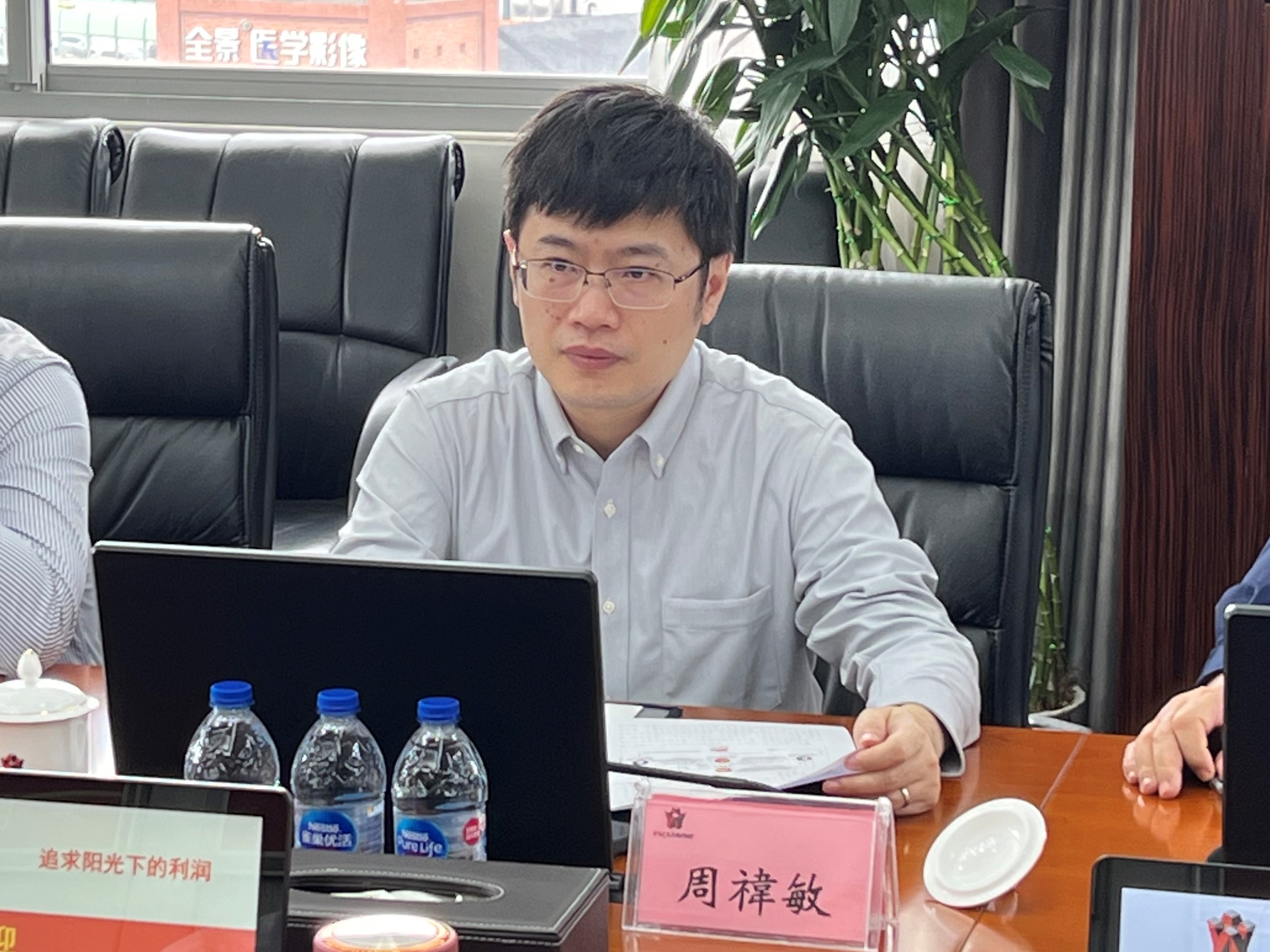 會上,桂益民董事長向中國銀行各位領導的到訪表示歡迎,顧圓圓介紹了鈺翔科技集團的基本情況和業務模式,以及目前雙方的合作情況,并就雙方如何更好地開展合作提出了一些建議。