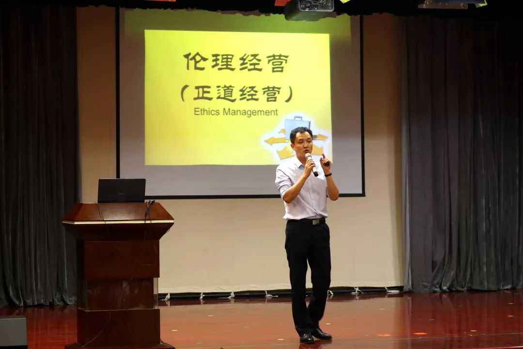 李成林總監(jiān)通過諸多有代表意義的案例,介紹了倫理經(jīng)營(yíng)的定義、守法與倫理、倫理的自我診斷以及我們?cè)诠ぷ髦械膫惱斫?jīng)營(yíng)等內(nèi)容。秦祖煌書記介紹了中國(guó)傳統(tǒng)文化儒釋道三家思想學(xué)說中關(guān)于廉潔修身的描述,要求全員要繼承和發(fā)揚(yáng)中國(guó)傳統(tǒng)文化,在工作和生活中注重廉潔修身。